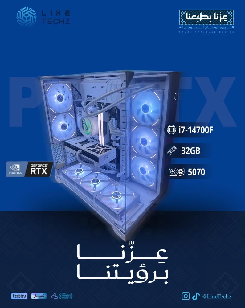 🔥 تجميعة i7-14700F مع RTX 5070 White – أداء احترافي وأناقة فائقة!اجمع بين الأداء العالي والتصميم العصري مع تجميعة قوية تجمع بين معالج Intel® Core™ i7 الجيل 14 وكرت شاشة RTX 5070 White من Inno3D، مدعومة بتبريد مائي LCD وكيس Lian Li الفاخر مع 8 مراوح لتبريد فائق وإضاءة RGB مذهلة.